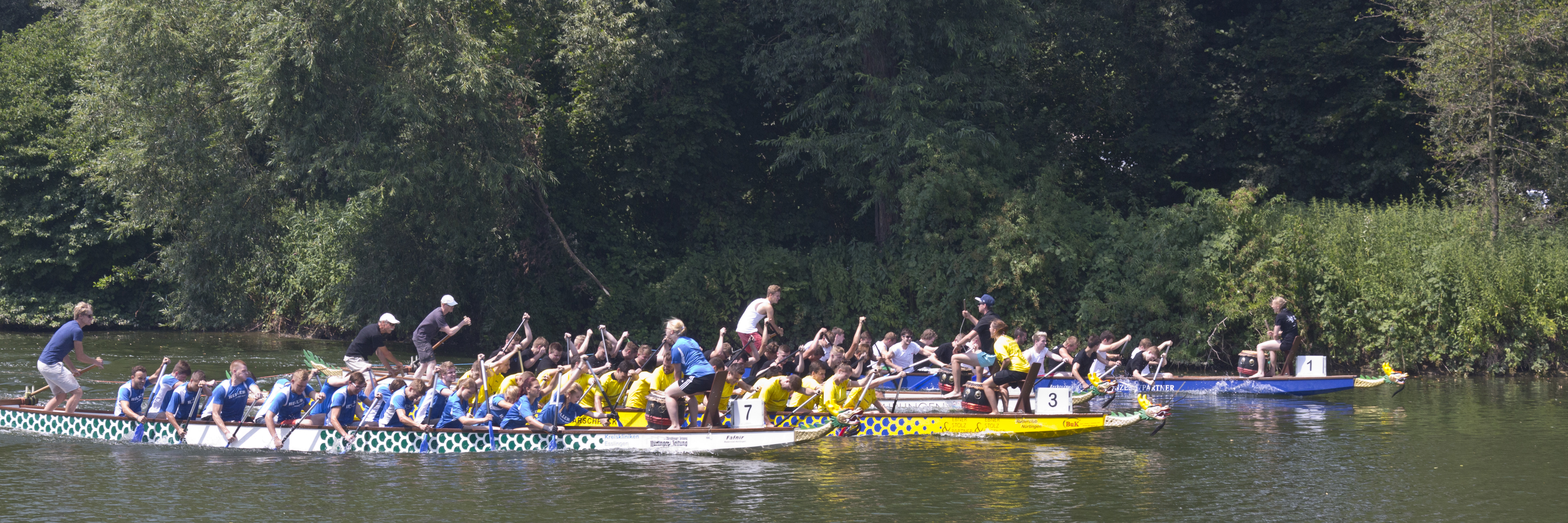 Mehr als zweihundert Azubis tauschten gestern (17. Juli 2015) ihr übliches Werkzeug gegen ein Paddel und die Werkbank oder den Schreibtisch gegen einen Platz im Drachenboot ein. Insgesamt zwölf Mannschaften starteten beim zweiten „Azubi-Drabo-Race“, der vom Nürtinger Ruderclub gemeinsam mit der Firma Heller veranstaltet wird.