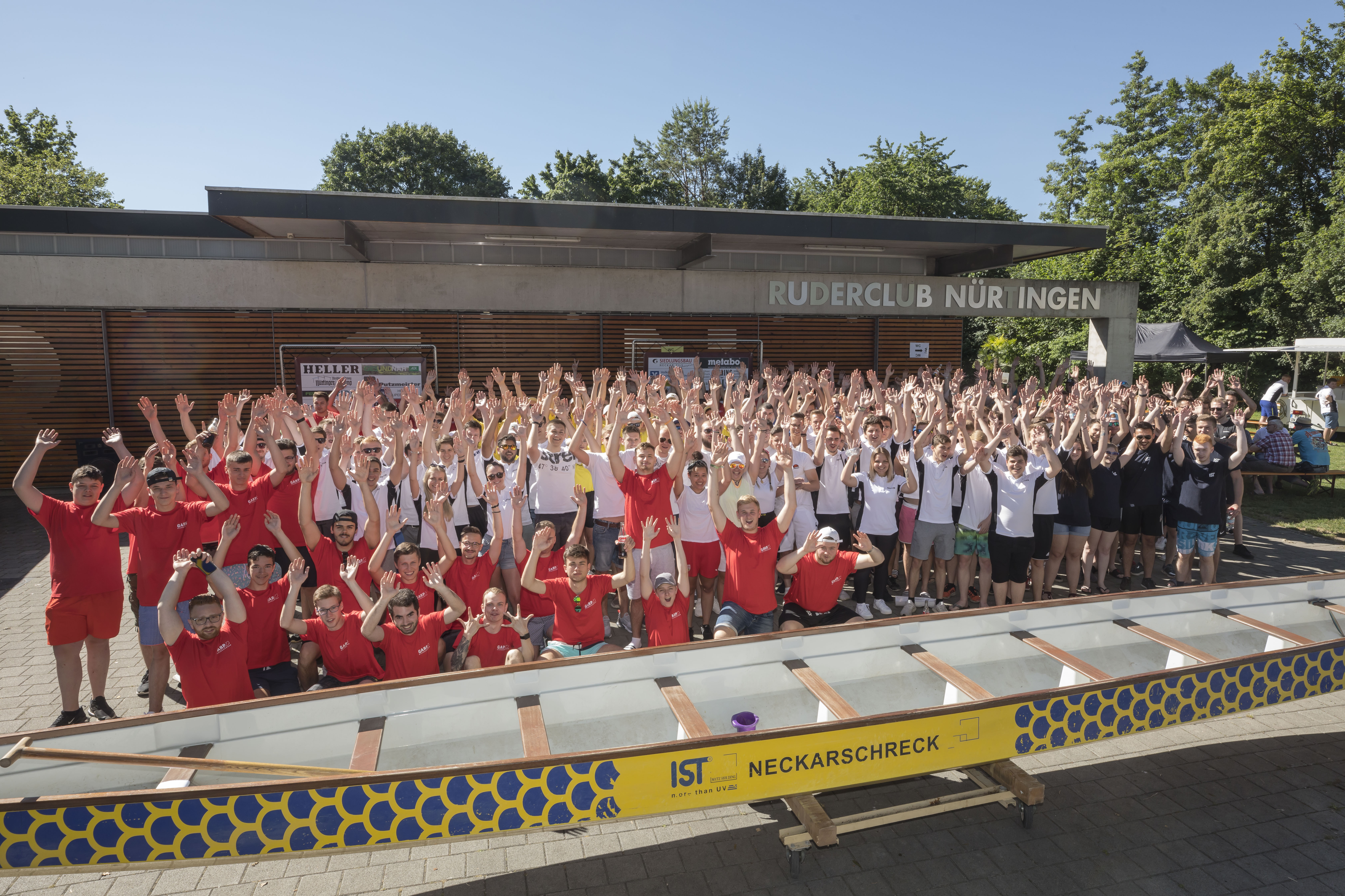 Die Drachenjäger mussten sich durch Vorläufe, Hoffnungsläufe und Halbfinals kämpfen, bis schließlich die besten vier im Finale feststanden. Die Paddler der Neckarschnaken (Firma Nagel), die Blauwasserfräser (Firma Heller), The flying elephants (Firma Putzmeister) und die White Shark´s (GARP Bildungszentrum) starteten zum entscheidenden Rennen über die 300-Meter-Distanz. Die Boote pflügten parallel, getrieben von den rhythmischen Schlägen ihrer Vortrommler und dem Jubel des Publikums durchs schäumende Neckarwasser. Die Zuschauer an Land und das RCN-Team am Zielpunkt taten sich schwer, mit bloßem Auge die Drachennase auszumachen, die als erste die Ziellinie überquert hatte. Zwischen Platz zwei und drei waren gerade mal 8 Hundertstel Sekunden Zeitunterschied, eine weitere halbe Sekunde nur auf Platz eins. Erst der Zielfilm konnte Klarheit schaffen: In diesem Jahr waren es die Neckarschnaken, die den letzten Stich machten. Auf Platz zwei landeten die Blaufräser, gefolgt von den flying elephants.