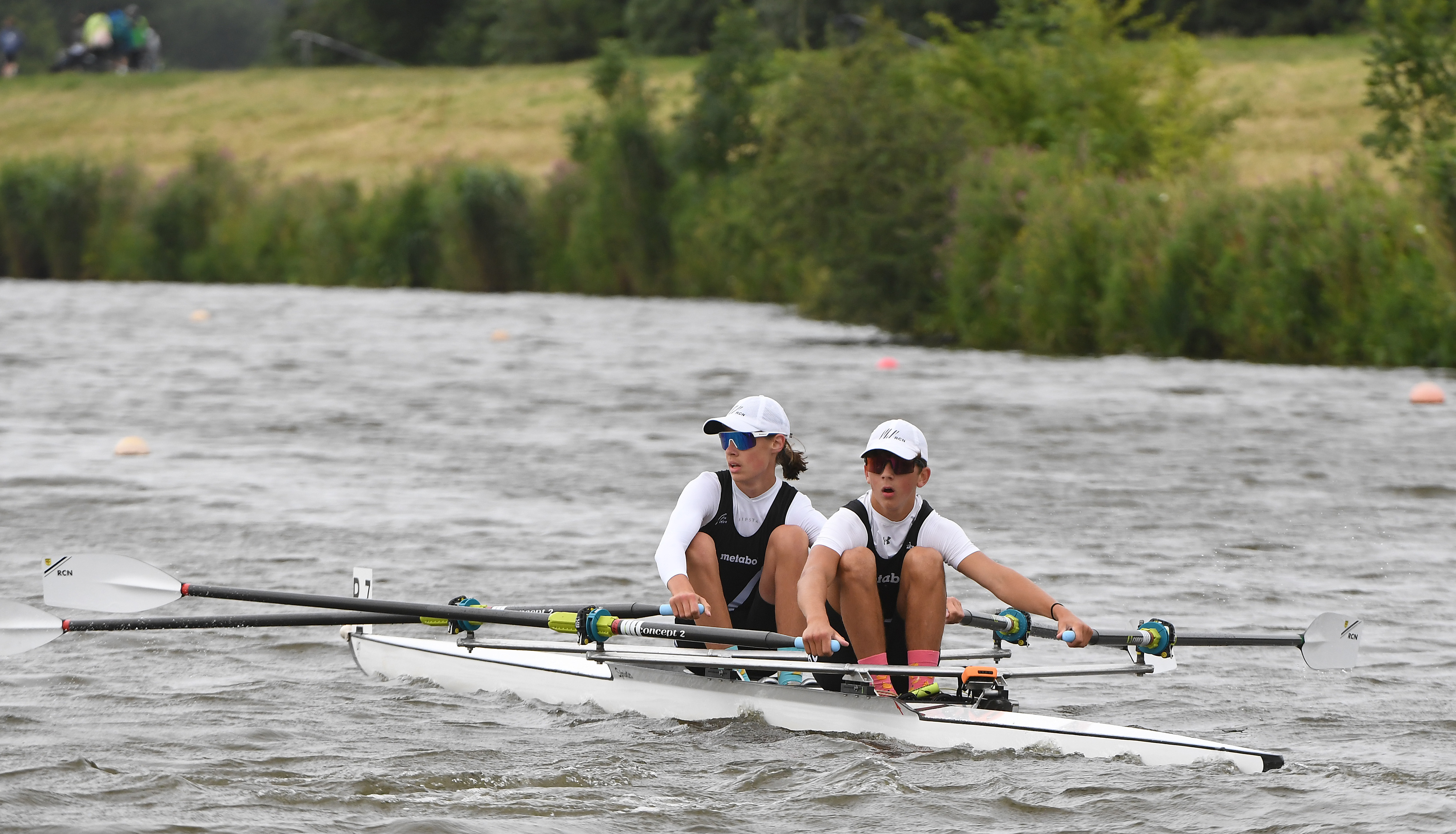 Wie bereits im Mädchendoppelvierer kam es auch im leichten Jungendoppelzweier 12/13 Jahre zu einer kurzfristigen Umbesetzung: Mika Swoboda sprang für seinen Nürtinger Ruderkollegen Danang Atmosudiro ein und ging mit David Thome an den Start. Die beiden Leichtgewichte kämpften sich sehr tapfer durch die Wellen und erreichten den fünften Platz im C-Finale.