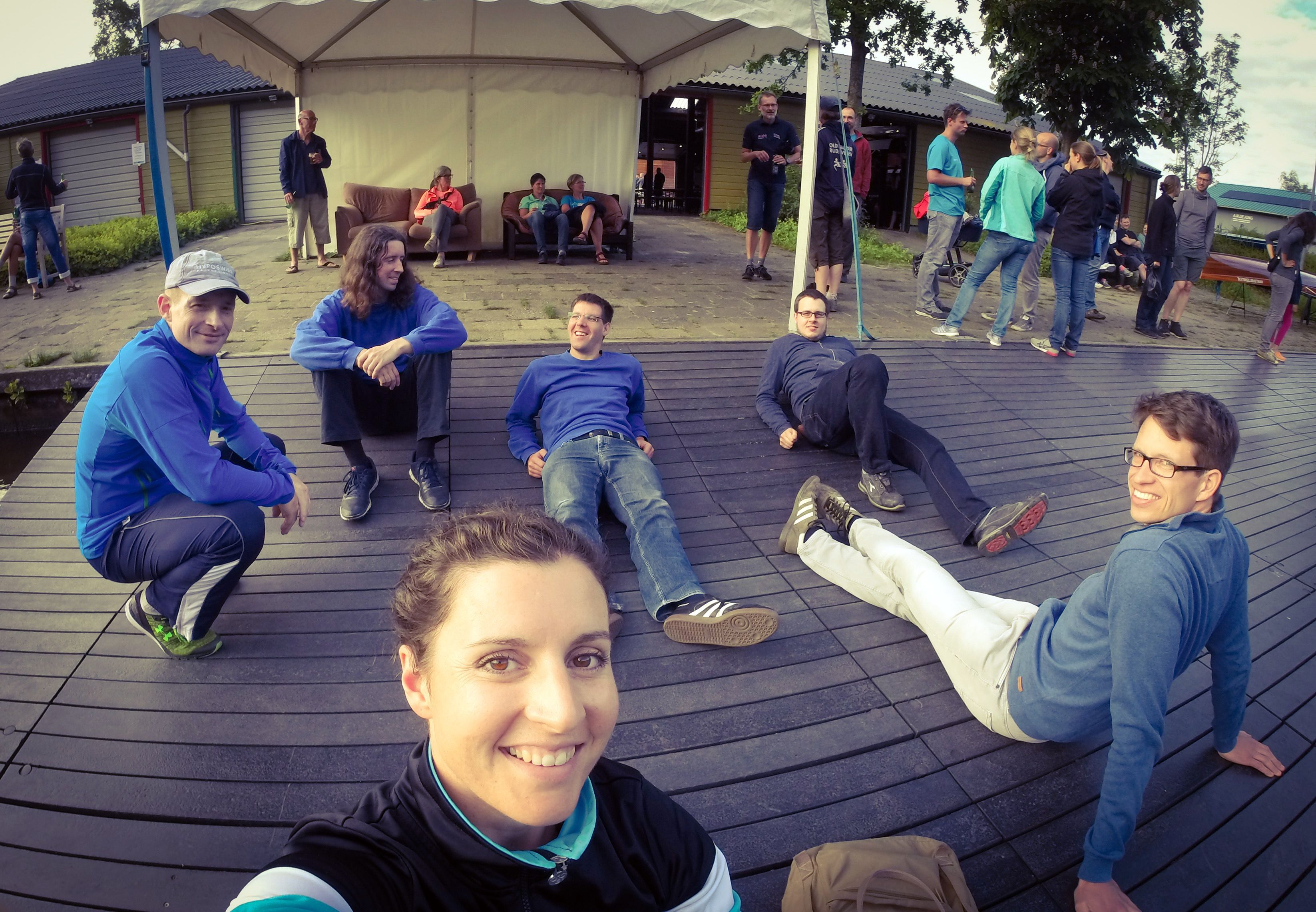 Der unvermeidlicher Selfie mit ¾ des Teams am Steg des LRV Wetterwille: Henning, Markus, Marion, Michi, Phil und Christian.