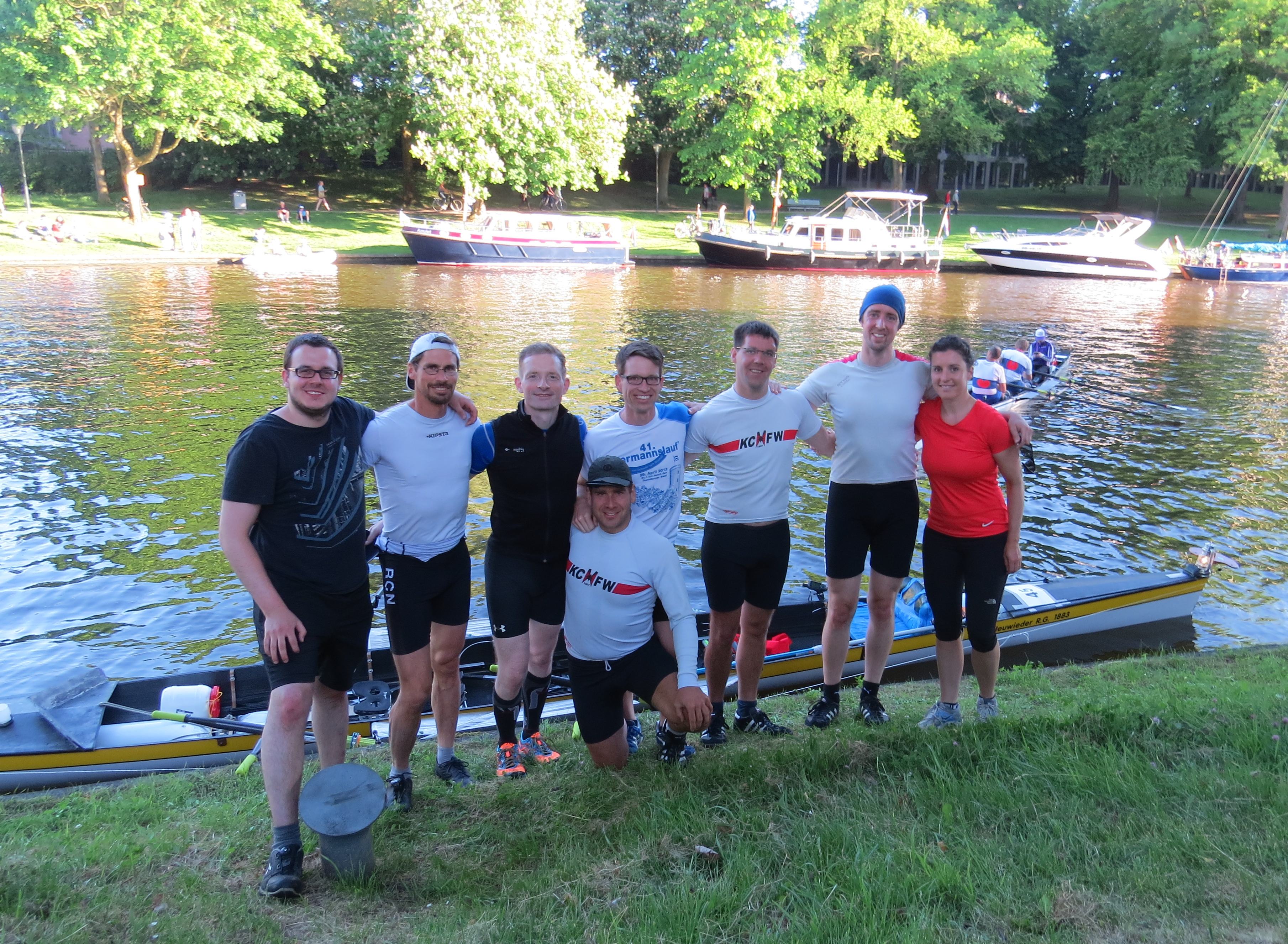In Ermangelung an gemeinsamem Training wurde die Europäische Rheinregatta über 100km von der Loreley nach Bonn 3 Wochen vor dem ERM als gemeinsame Übungsmöglichkeit von zumindest 5 der 6 Cool-Runnings-Ruderer (ohne Christian Maus) auserkoren. Die Trainingsfahrt im Wettkampfgewand zeigte eine gute Kompatibilität der Ruderer und Ruderstile: Team Cool Runnings gewann die Regatta mit großem Vorsprung in einer beachtlichen Zeit knapp unter der selten durchbrochenen 5-Stunden-Schallmauer. Das wirklich relevante Rennen konnte kommen…