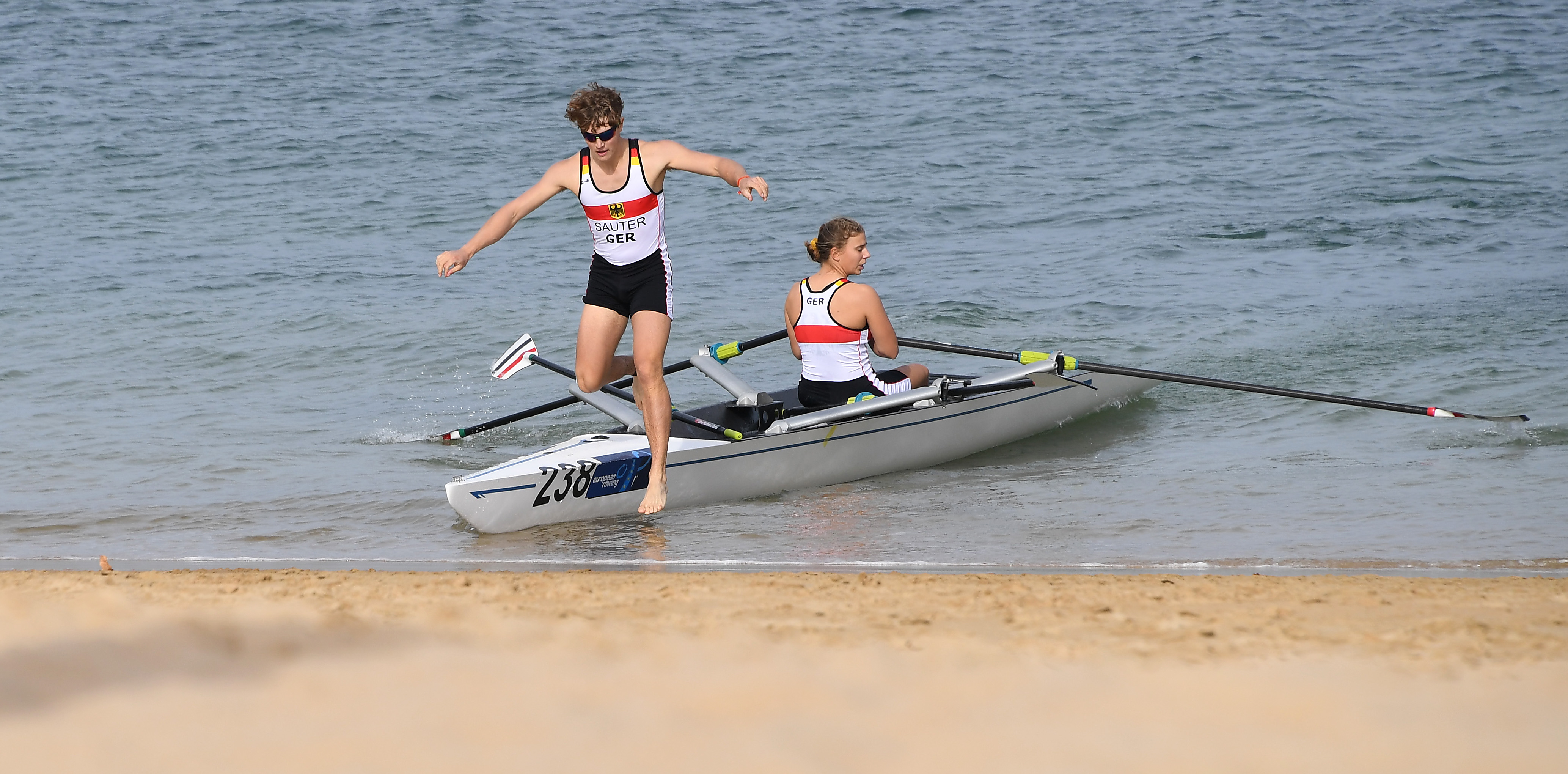 Jurek Sauter vom Ruderclub Nürtingen holte sich im spanischen San Sebastian zusammen mit seiner Schwester Pauline die Bronzemedaille im Beach Sprint. Bei dieser neuen Ruderklasse endet das 500m-Rennen am Buzzer nach einem Sprint über den Sandstrand.