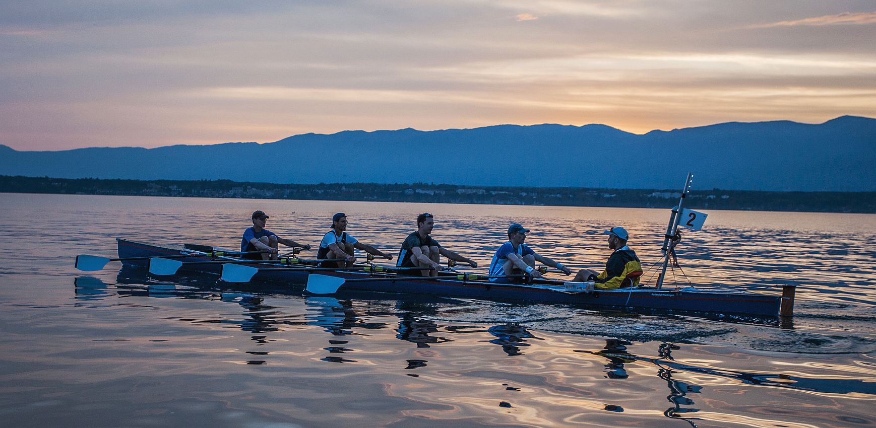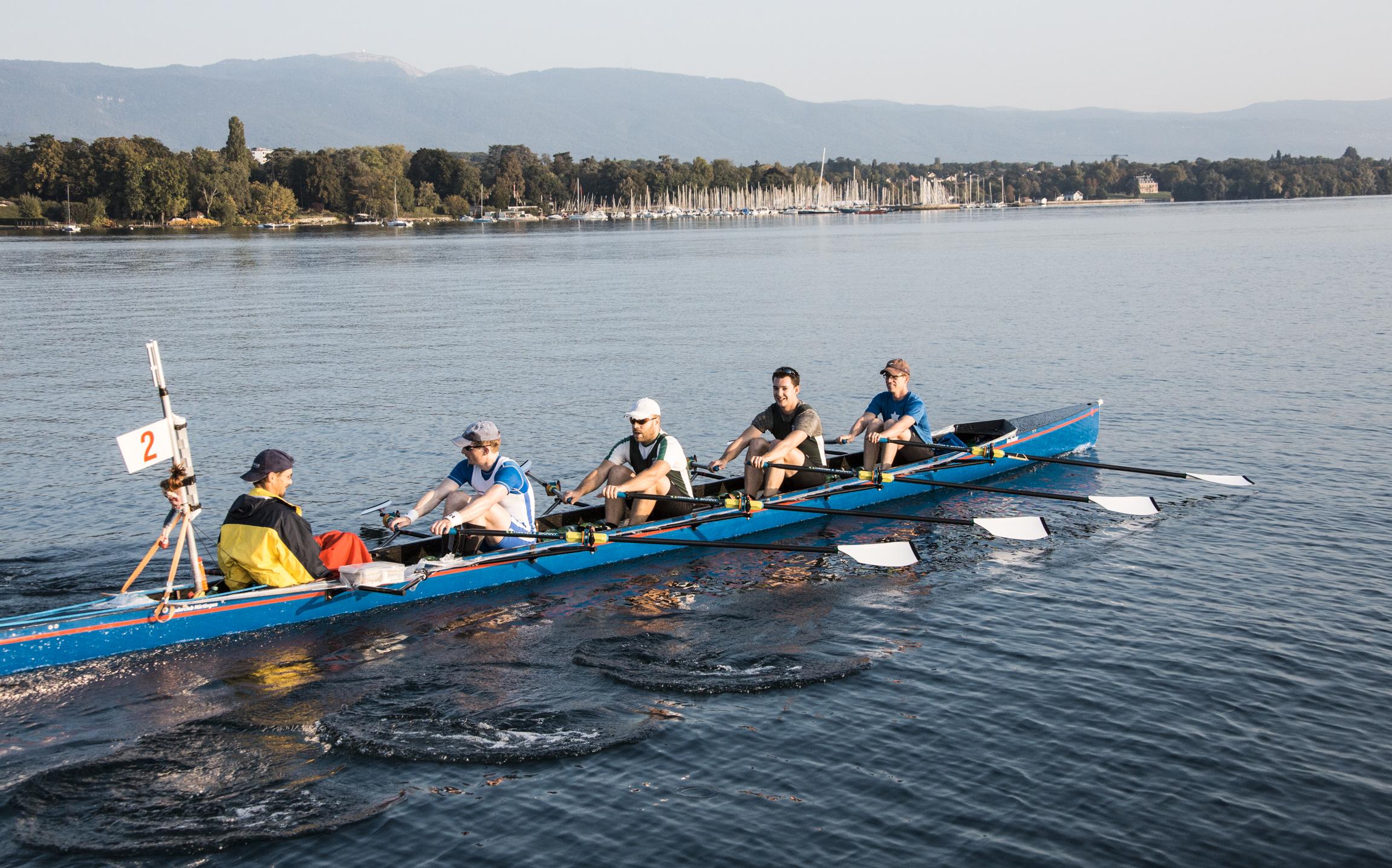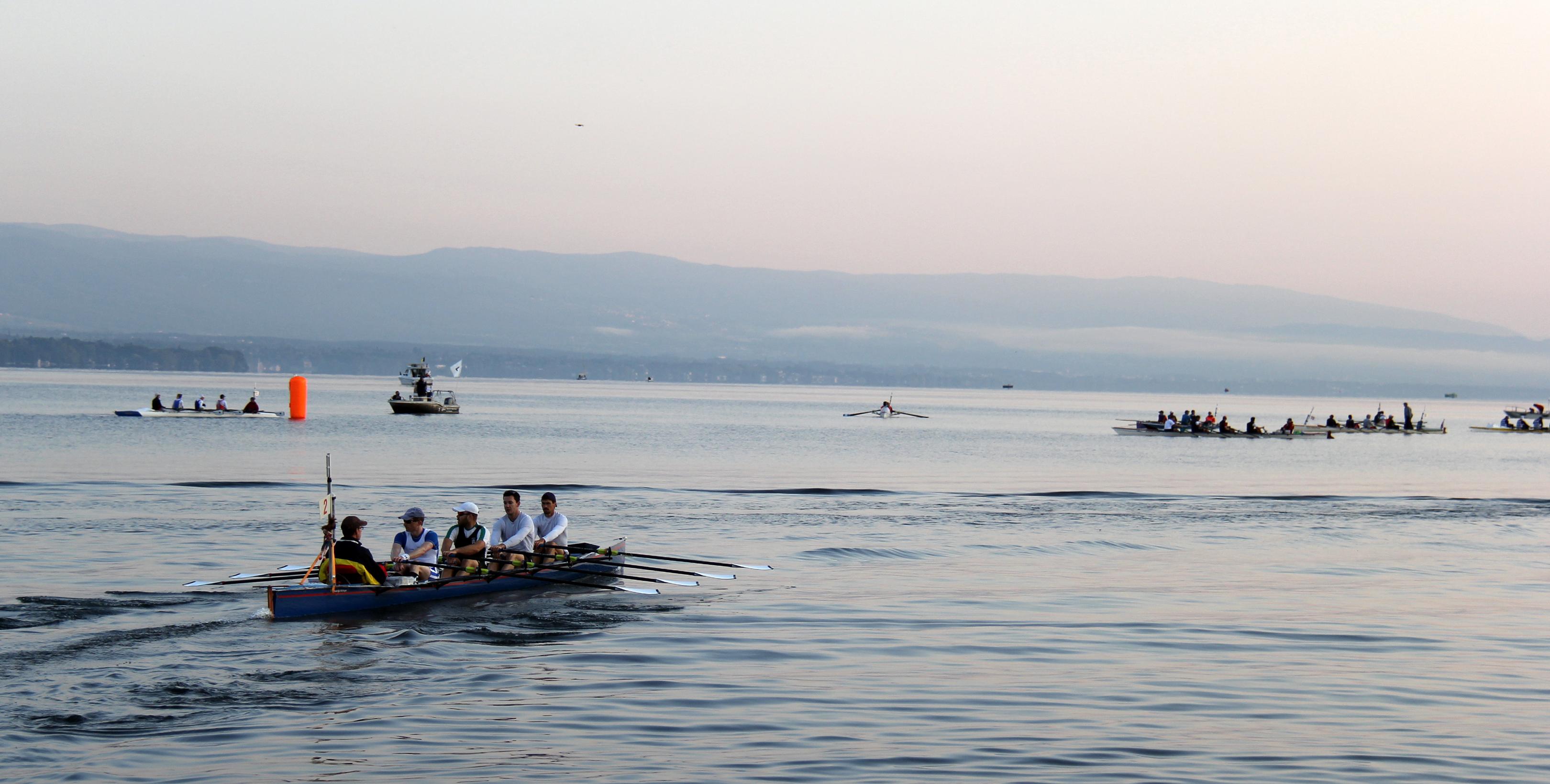 Vom 22. bis 24. September war es wieder so weit – der Saisonhöhepunkt für die ganz hartgesottenen Langstreckenruderer stand an, die Tour du Léman à l´Aviron. Oder schnöder ausgedrückt: die Genfersee-Regatta, ein Rennen über 160 km in gesteuerten C-Vierern rund um Mitteleuropas zweitgrößten See (hinter dem Plattensee und vor dem Bodensee!). Mit 12 Teilnahmen, davon seit 2006 ohne Unterbrechung, gehört RCNler Matthias Auer zu den erfahreneren Genf-Kempen. Während er sonst mit Kollegen eines über die Jahre gewachsenen Langstreckler-Pools startete, war die Ausgangskonstellation in diesem Jahr etwas anders: aufgrund von Rücktritten bzw. anderen Schwerpunktlegungen oder aber konkurrierender Projekte musste beim Team-Building etwas improvisiert werden. So ergab es sich, dass Matthias zwar mit 2 seiner langjährigen Genf-Kollegen, Henning Osthoff vom RC Hamm und Christian Maus vom Bonner RV, im Boot saß, er die beiden anderen Ruderer vom WSAP Hamburg, Max Rolfes und Jens-Peter Müller, aber nur vom Hörensagen oder sehr losen Regattakontakten kannte.