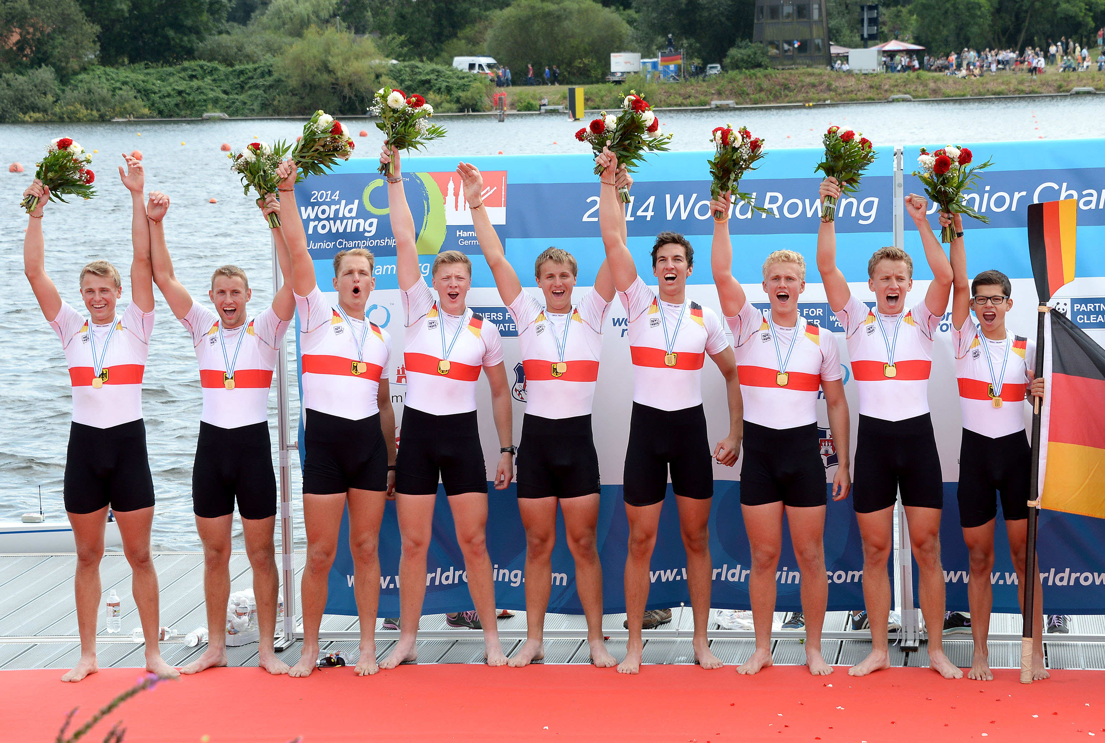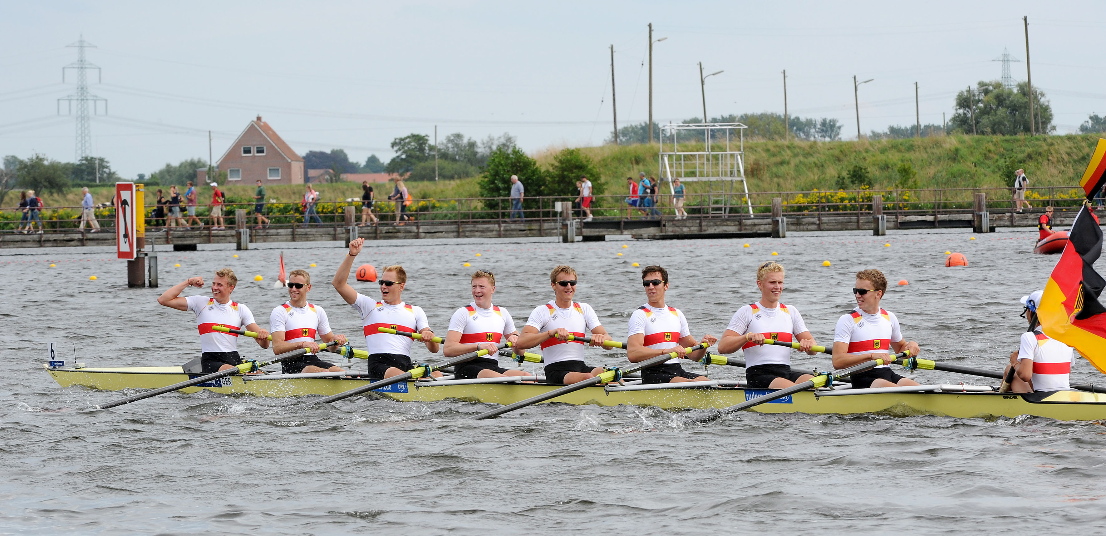 Der deutsche Junioren-Achter im Jubelwahn: Wir sind Weltmeister !!