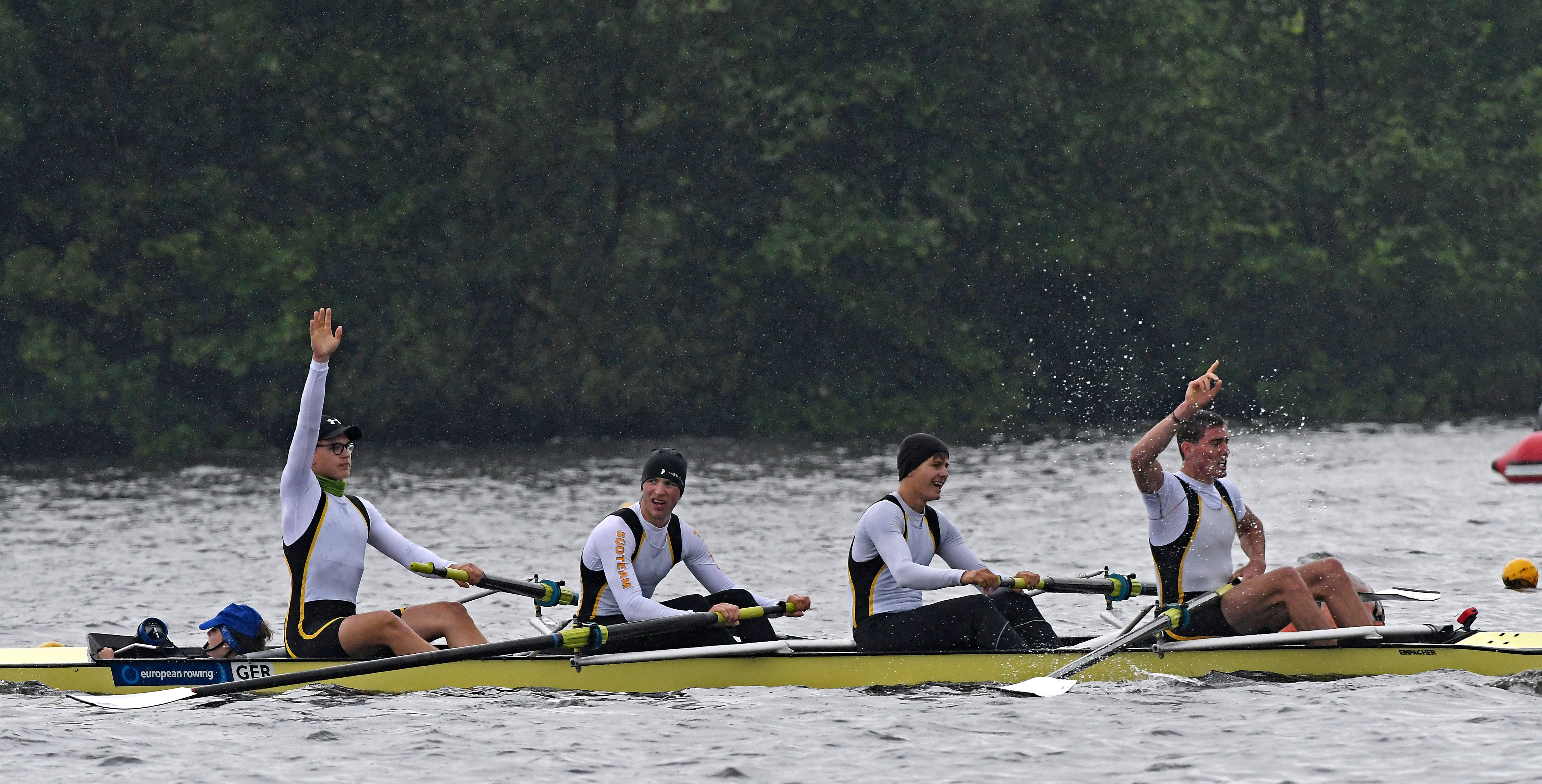 Nachdem Oliver Peikert ( ganz rechts ) am Vortag sein WM-Ticket gelöst hat, ruderte er sonntags im Vierer mit Steuermann überlegen zum Sieg.