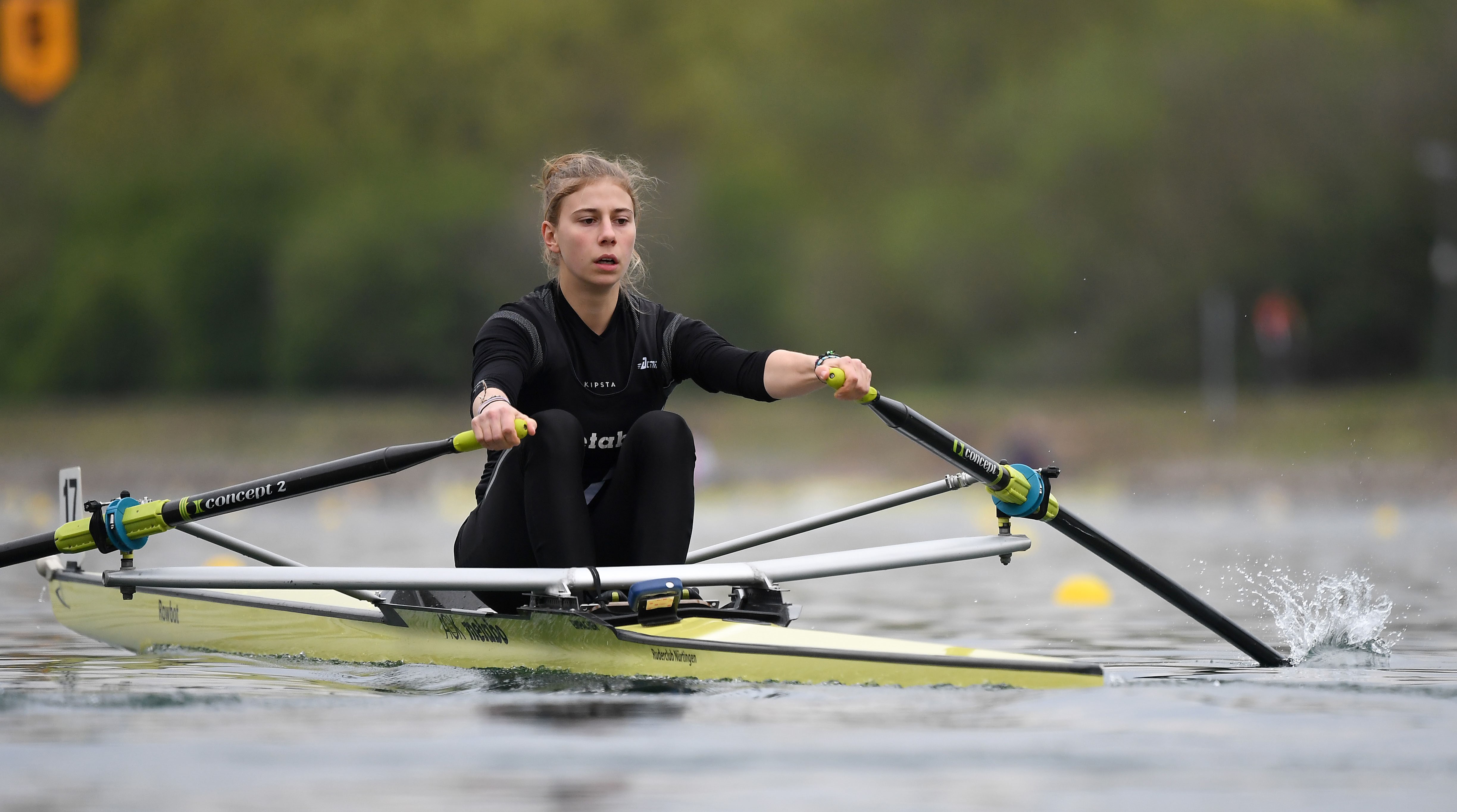 Pauline Sauter machte im Einer der Leichtgewichtsklasse den Anfang. Letzte Saison noch im U19 Juniorinnen Bereich gestartet, gilt es sich in diesem Jahr bei den „Großen“ zu beweisen. Bei diesen Kleinbootmeisterschaften starten die U23 Sportler gemeinsam mit denen aus dem A-Bereich - also teilweise Leuten, die schon international bei Weltmeisterschaften und Olympia dabei waren.