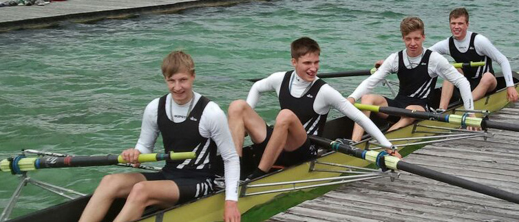 Julian Defillion sitzt im Baden-Württem-bergischen Auswahl-Vierer zusammen mit Ruderern aus Stuttgart und Mannheim. Diese Crew ging bewusst nach Bremen, da man hier im Bereich der 15/16-Jährigen auf die starke nationale Konkurrenz trifft. Dieser Leichtgewichts-Vierer fuhr sein erstes Rennen aber bei den ‚Schweren’ und überraschte mit einem zweiten Platz. Daher rechneten sich die „Ba-Wü-ler“ schon etwas aus in ihren Hauptrennen, im Doppelvierer der Leichtgewichte. Und tatsächlich konnten sich die Südauswahl hier mit über fünf Längen Vorsprung durchsetzen. Am Sonntag gewannen die vier ‚Dünnbeine’ dann sogar noch das Rennen bei den Schweren. Mit zwei Siegen im Gepäck kann Julian Defillion optimistisch in die nächsten Regatten gehen.