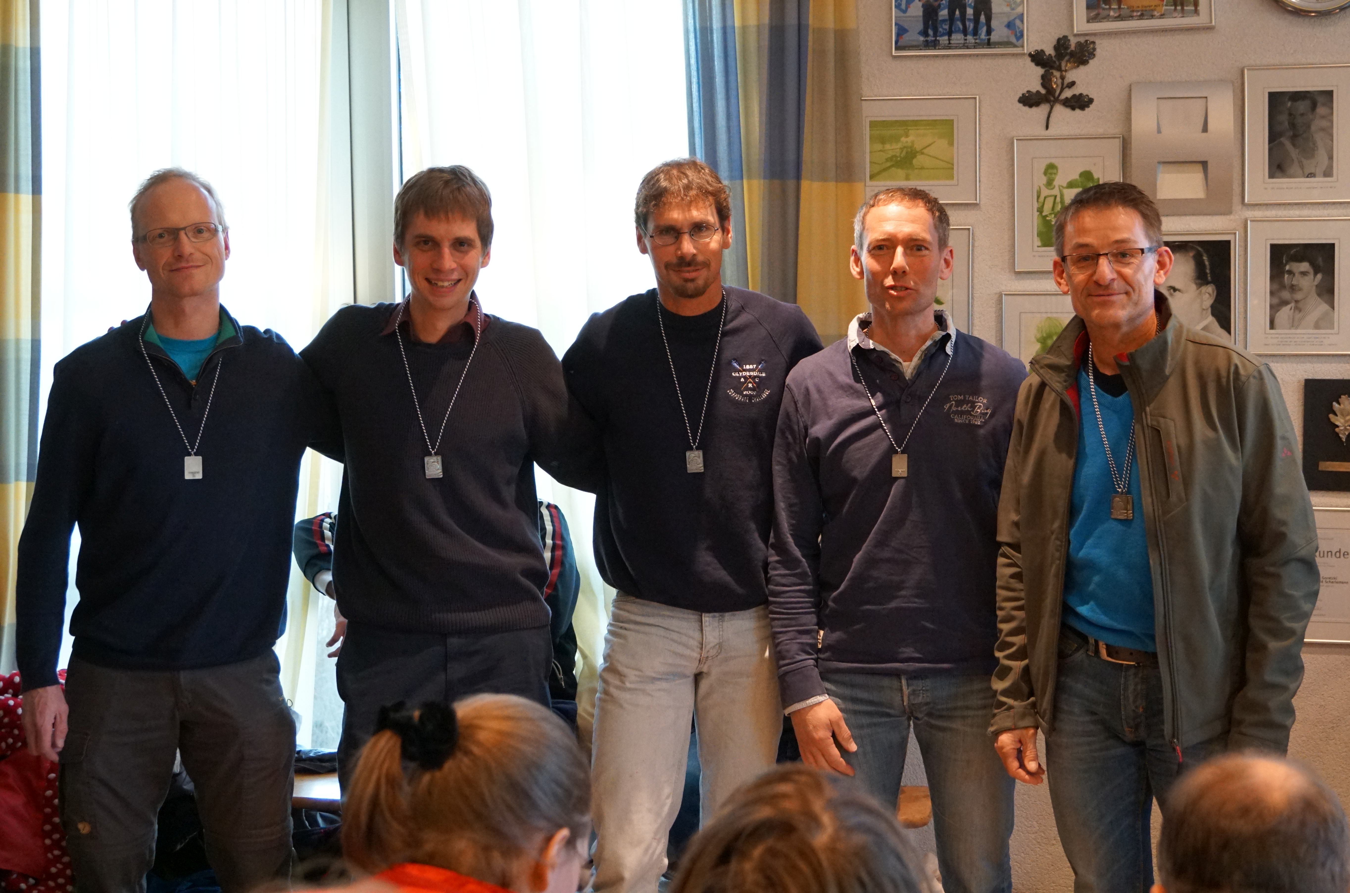 Keine Freunde und Helfer – Patrick, Martin, Matthias, Norbert und Wolfgang (KRA) auf ihrer ersten Runde nach Überholen des nervigen DLRG-Bootes…