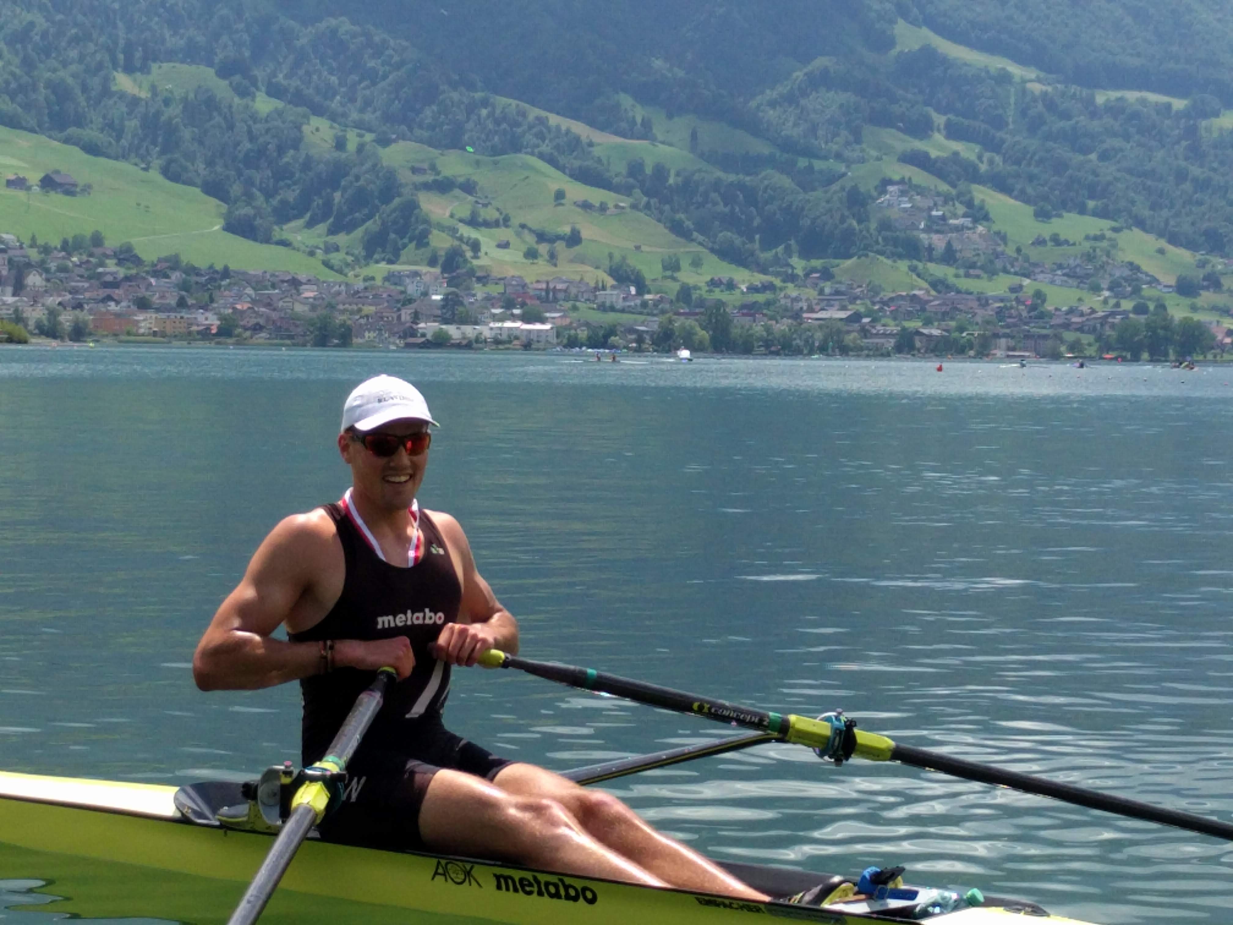 Oliver Peikert vom Ruderclub Nürtingen gewann an beiden Tagen den U23 Männer Einer auf der Internationalen Regatta im schweizerischen Sarnen.